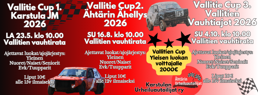 Vallitie Cup 2. Ähtärin Ähellys SU 16.8.2026 klo 10.00. Vallitien vauhtiradalla Karstulassa- TERVETULOA!
